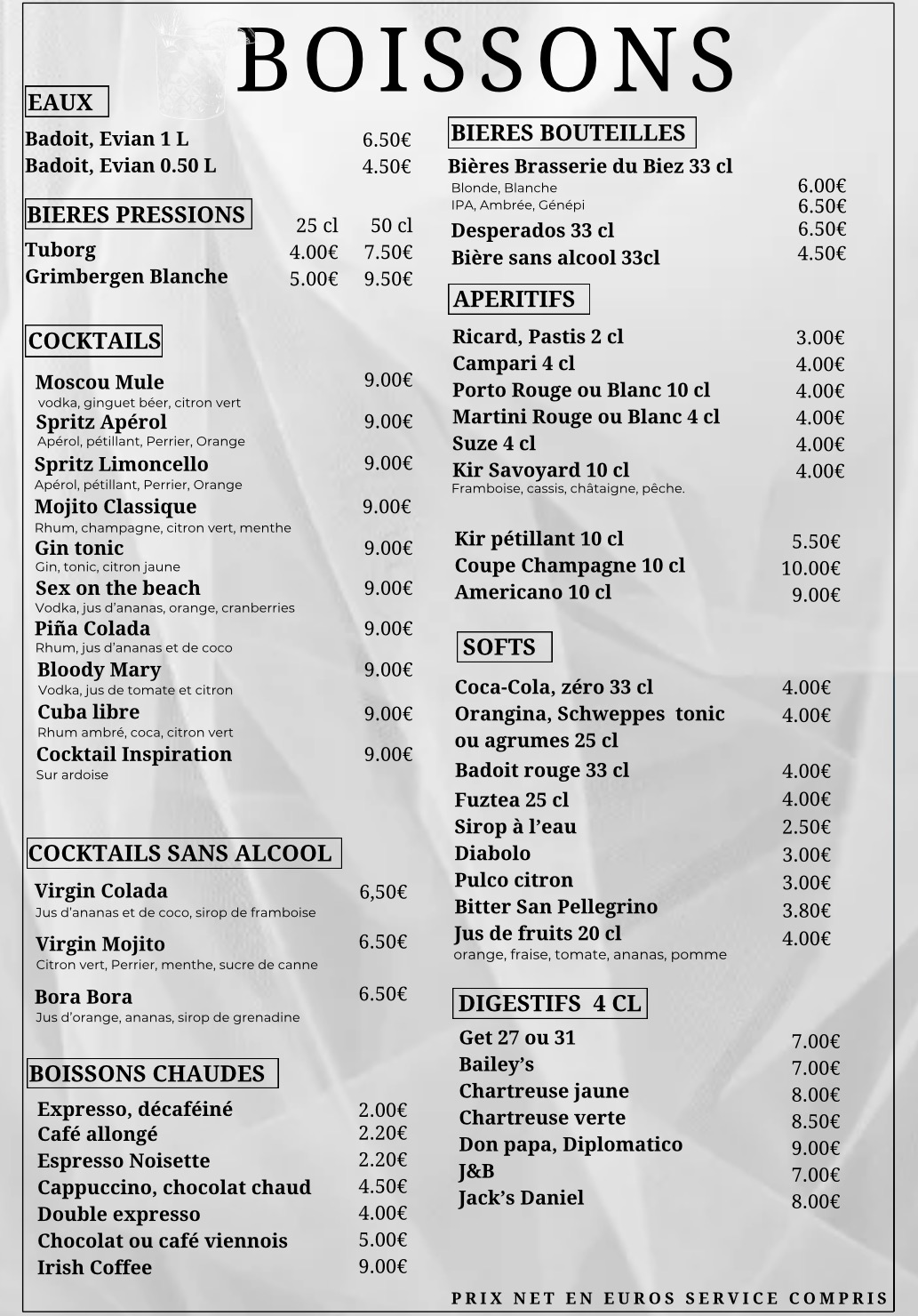 Accompagnés de bons vins ou de cocktails à déguster sur notre terrasse ombragée ou dans notre salle intérieure dans une ambiance conviviale.