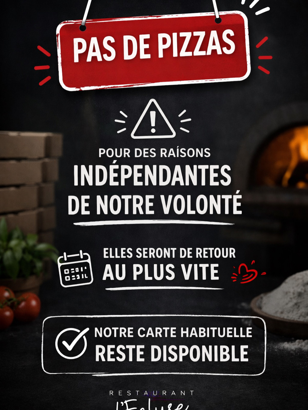Les pizzas reviennent rapidement au restaurant l’Ecluse, notre carte habituelle est disponible. Screenshot